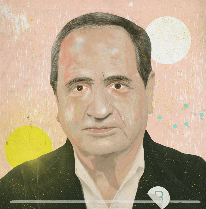 A portrait of the French intellectual and historian Pierre Rosanvallonand an illustration about populism.