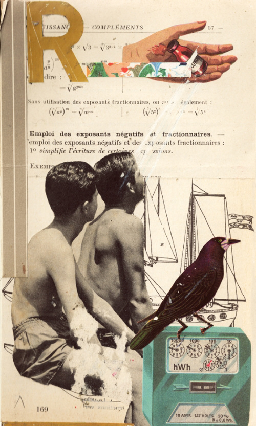 Technique: Collages, pencil and tape on vintage paper.